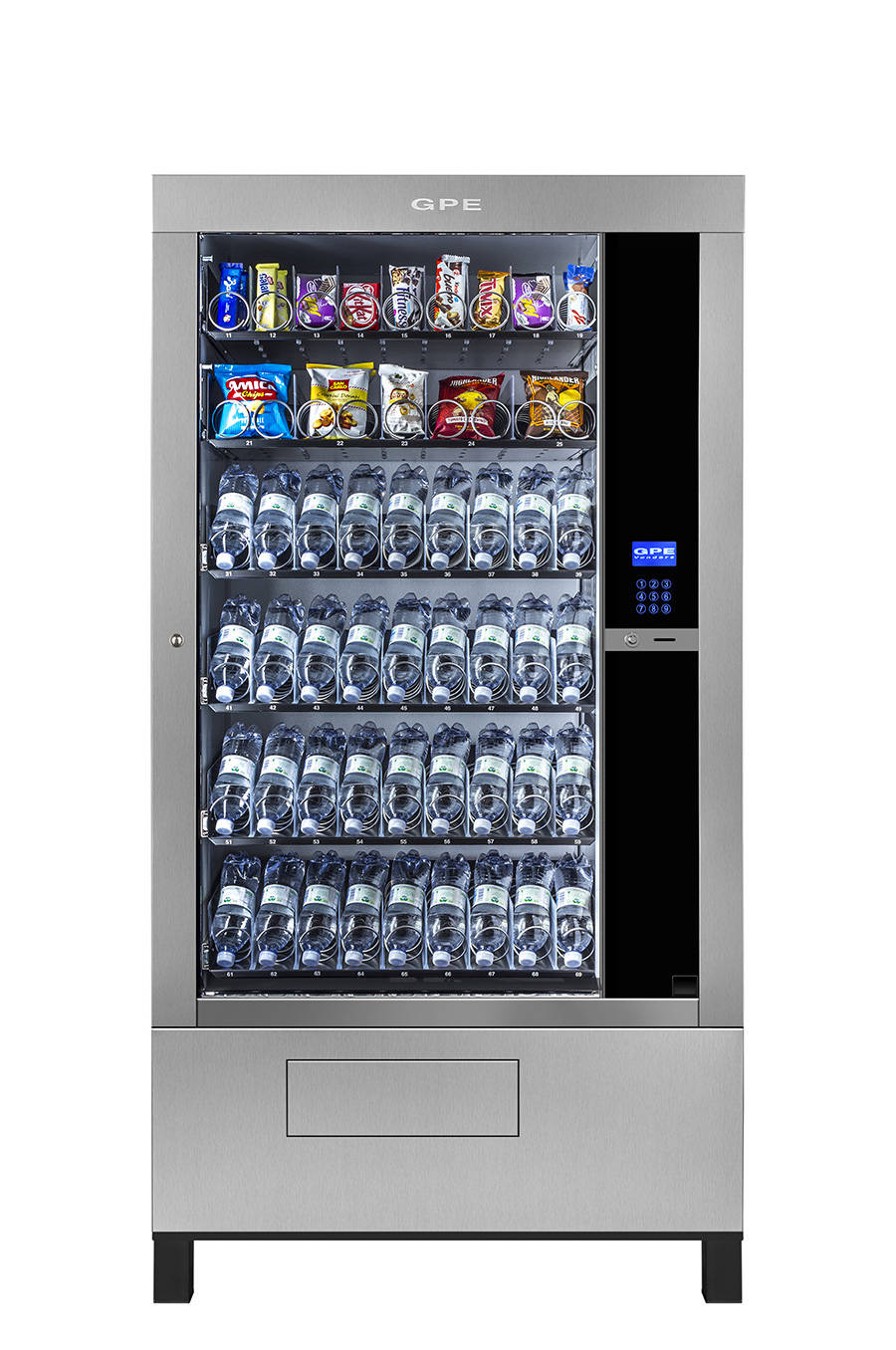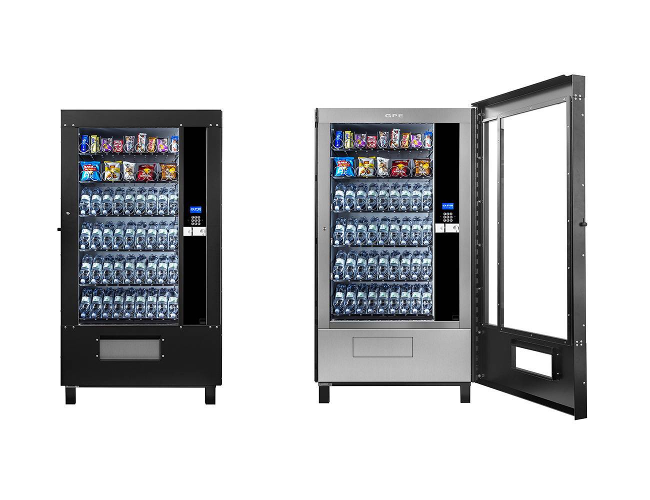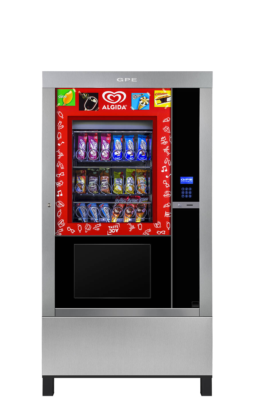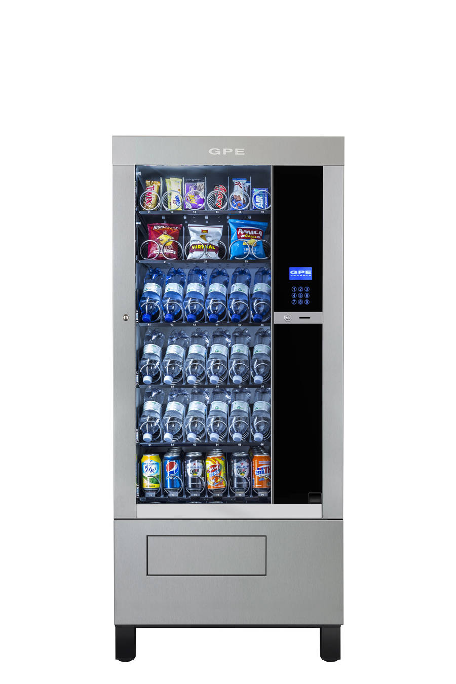 Modello blindato extra per zone più disagiate con grandi capacità di vendita : frigo per una costante conservazionione degli articoli in vendita , fino a  60 selezioni di vendita modulabili dal cliente per n risparmio sulle attività di manutenzione .