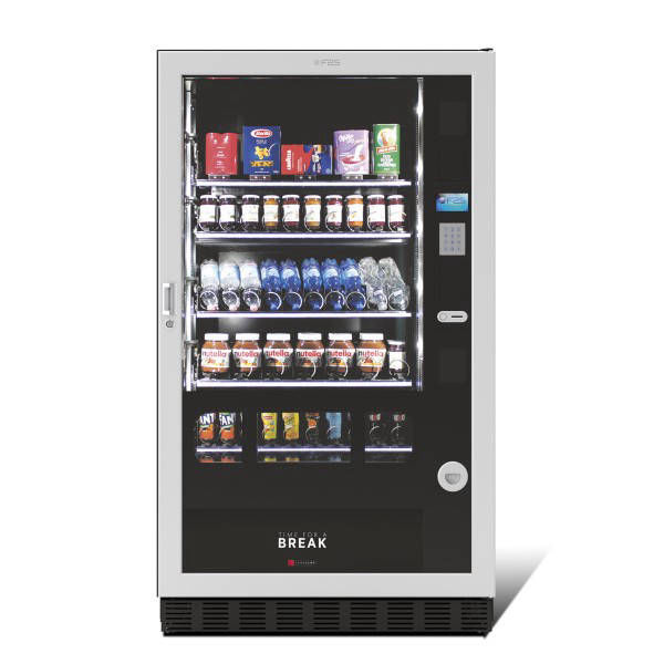 Modello medio blindato  per zone meno disagiate con grandi capacità di vendita : frigo per una costante conservazionione degli articoli in vendita , fino a 60 selezioni di vendita modulabili dal cliente per n risparmio sulle attività di manutenzione .